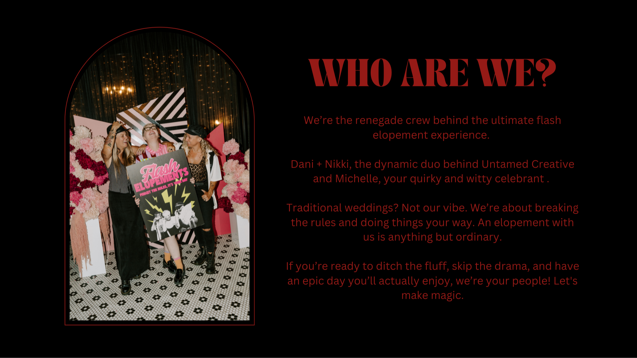 IF A BIG WEDDING ISN'T YOUR THANG.. WE GOT YOU! COME AND ELOPE WITH US IN STYLE