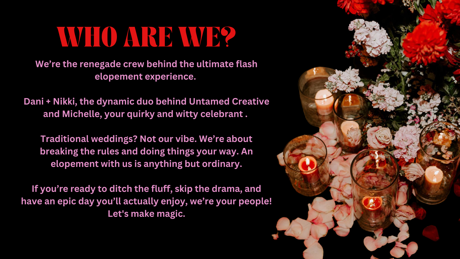 IF A BIG WEDDING ISN'T YOUR THANG.. WE GOT YOU! COME AND ELOPE WITH US IN STYLE